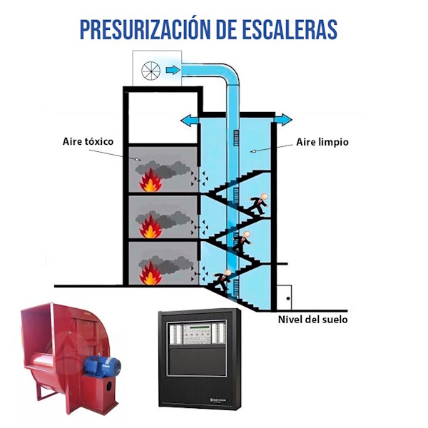 • El sistema de presurización de escaleras crea una presión mayor en la escalera que en el resto del edificio.