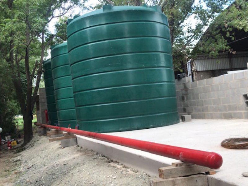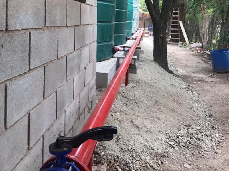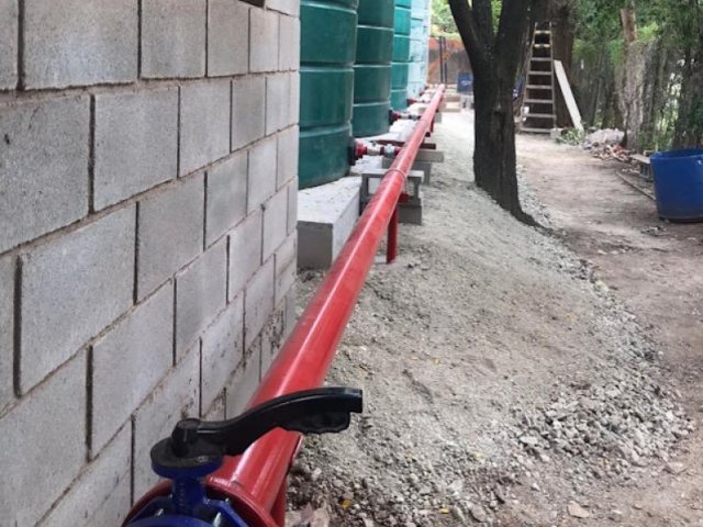 2). Se colocaron cinco tanques de almacenamiento de agua para caso de incendio conectándolo a la sala de bombas.